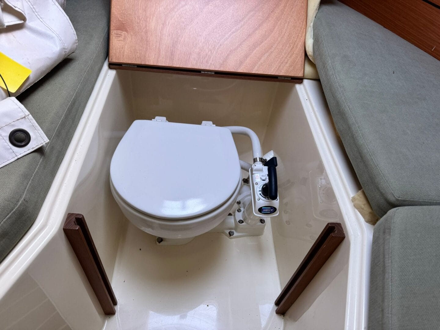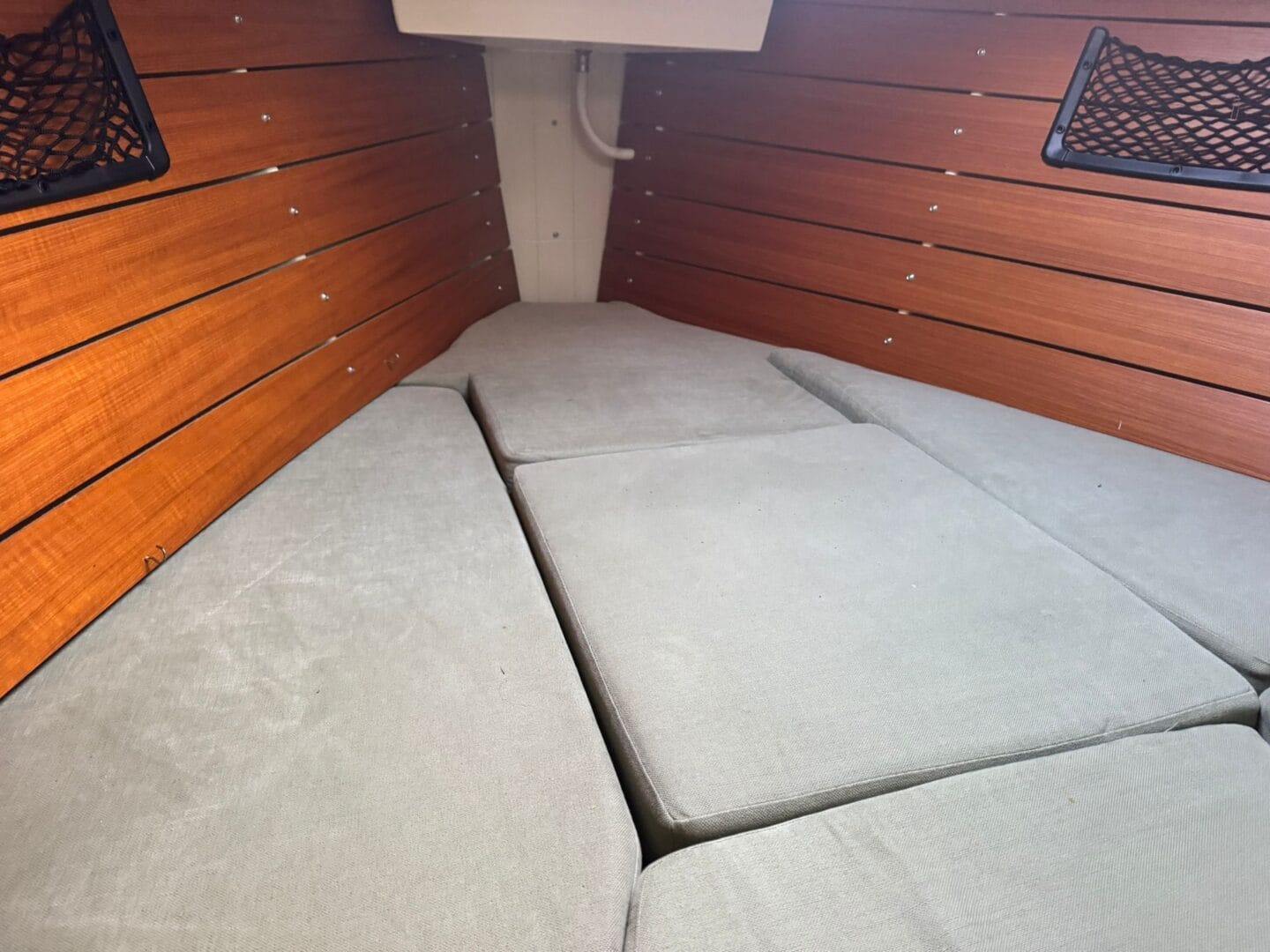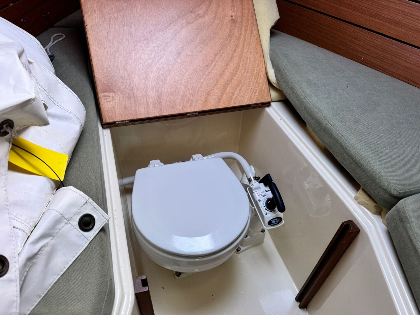 With the lifting keel, the maximum draft is 5 feet reducing to 2.4 feet when the keel is fully up, making it very convenient for moorings that dry out.
