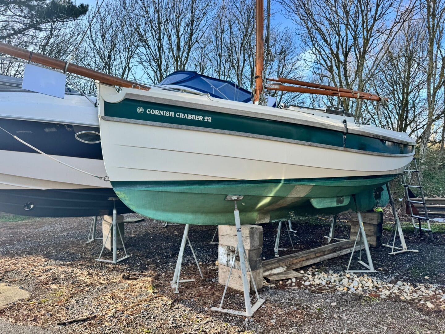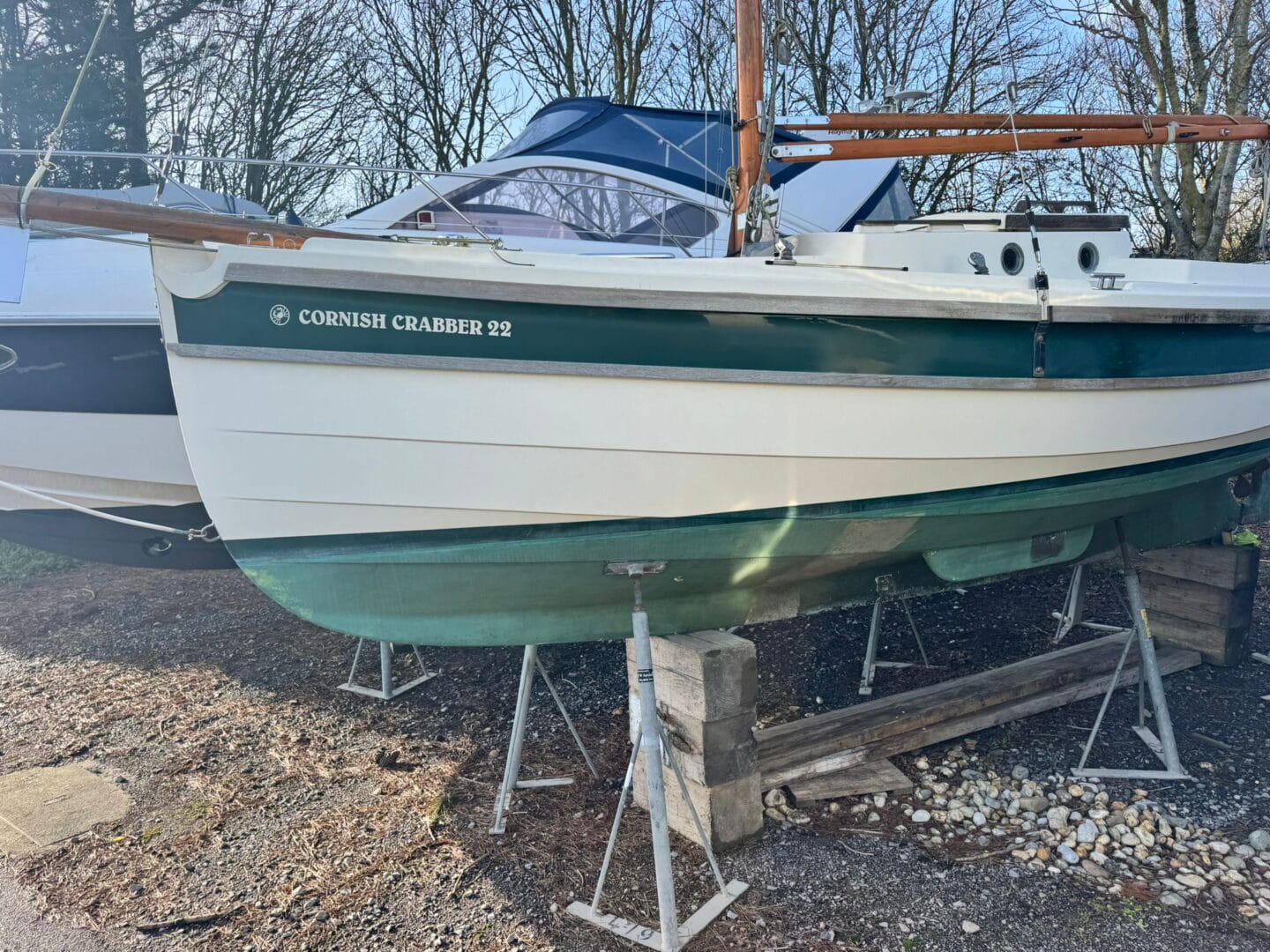 This Cornish Crabber 22 is out of the water, in our display area and is available for viewings 6 days a week (Sundays by appointment only.)
