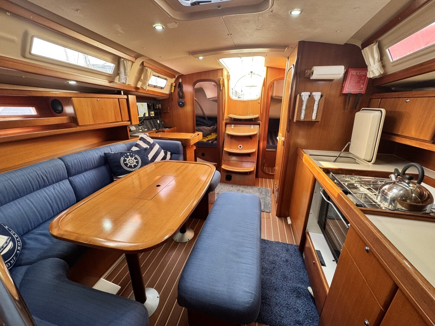 With its spacious cockpit, large saloon, 3 separate cabins, full galley and separate heads compartment. This Dufour 365 GL has room for all the family.