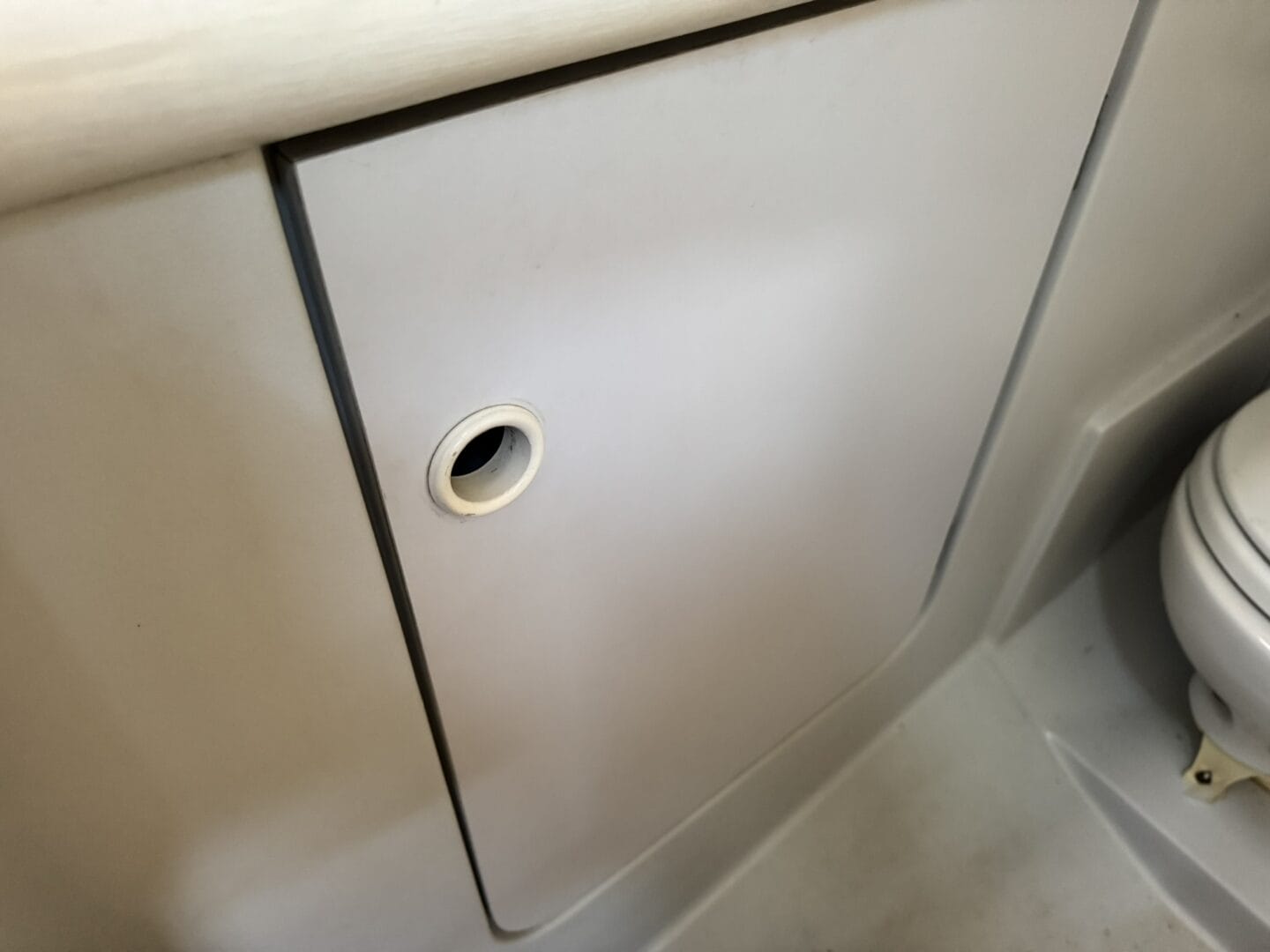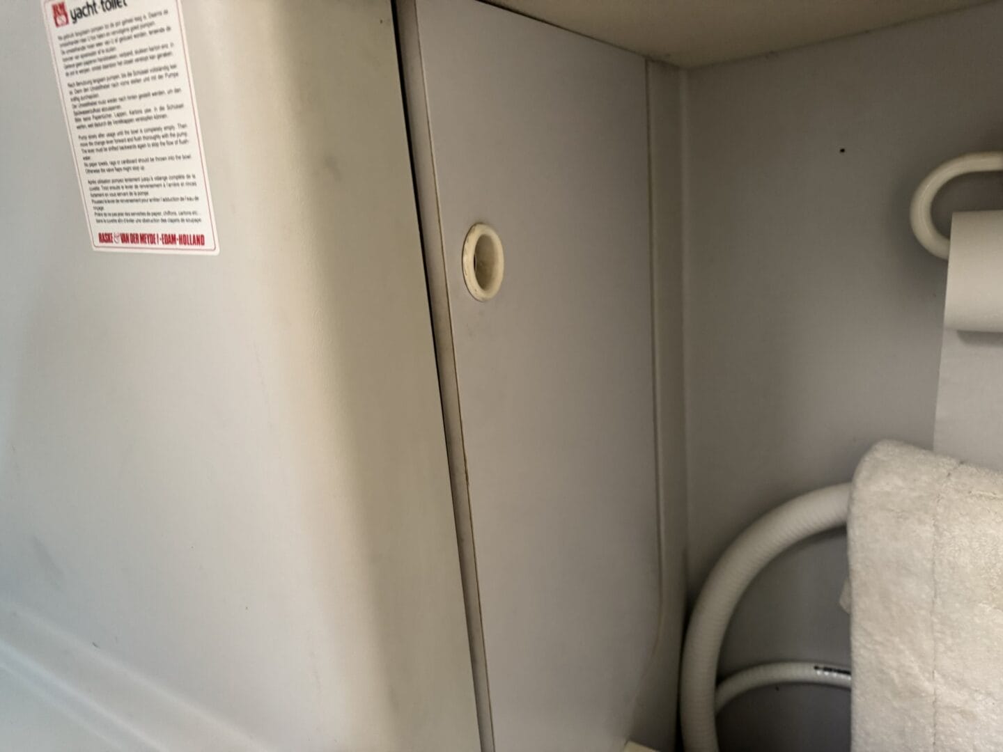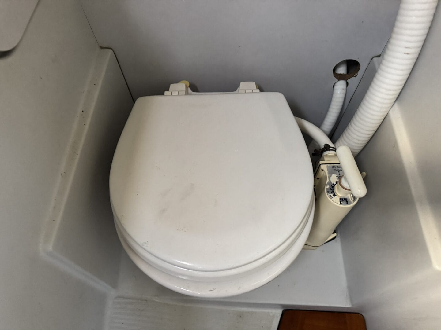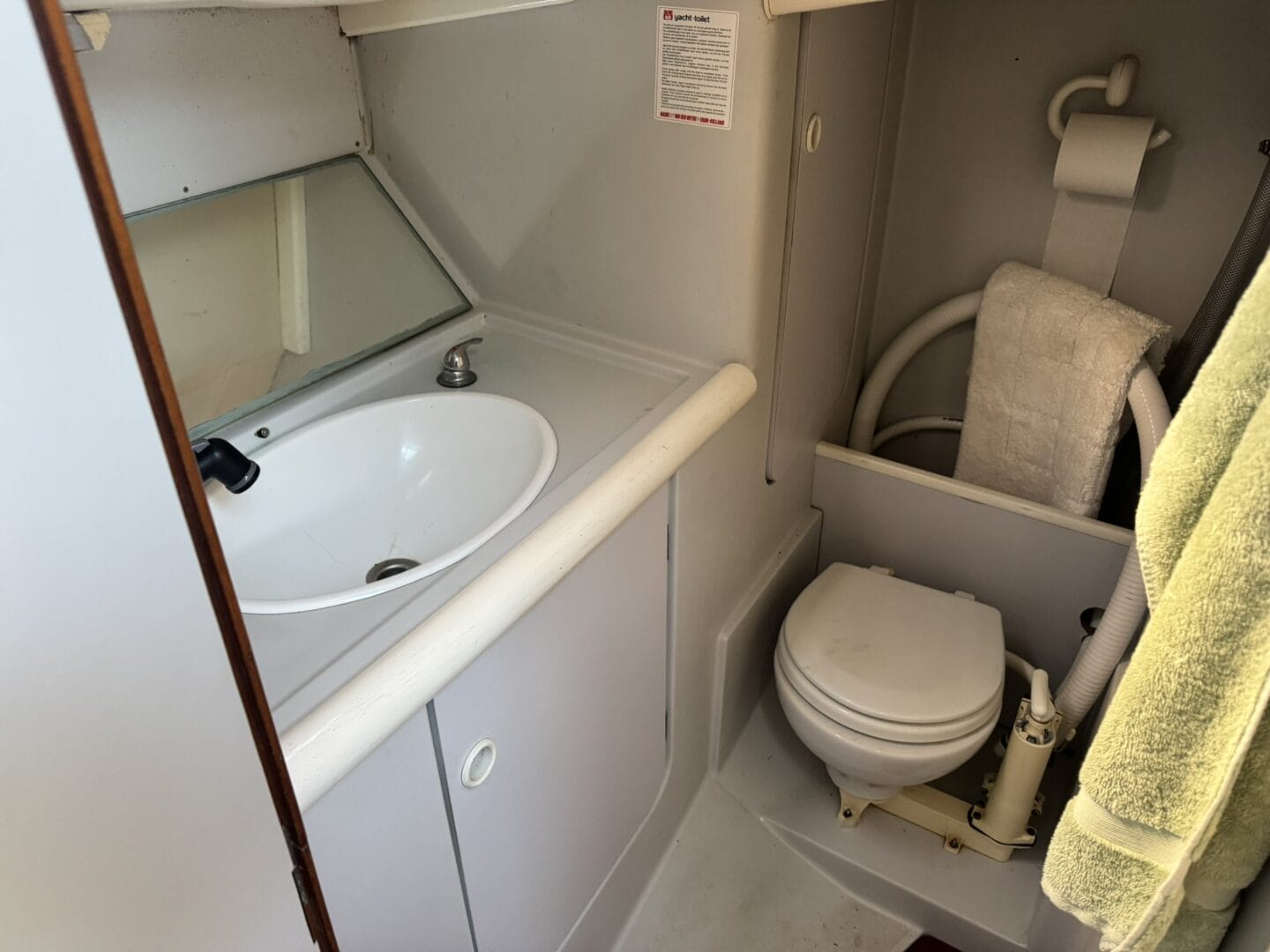 Heads compartment: manual toilet, sink, shower, hot & cold water