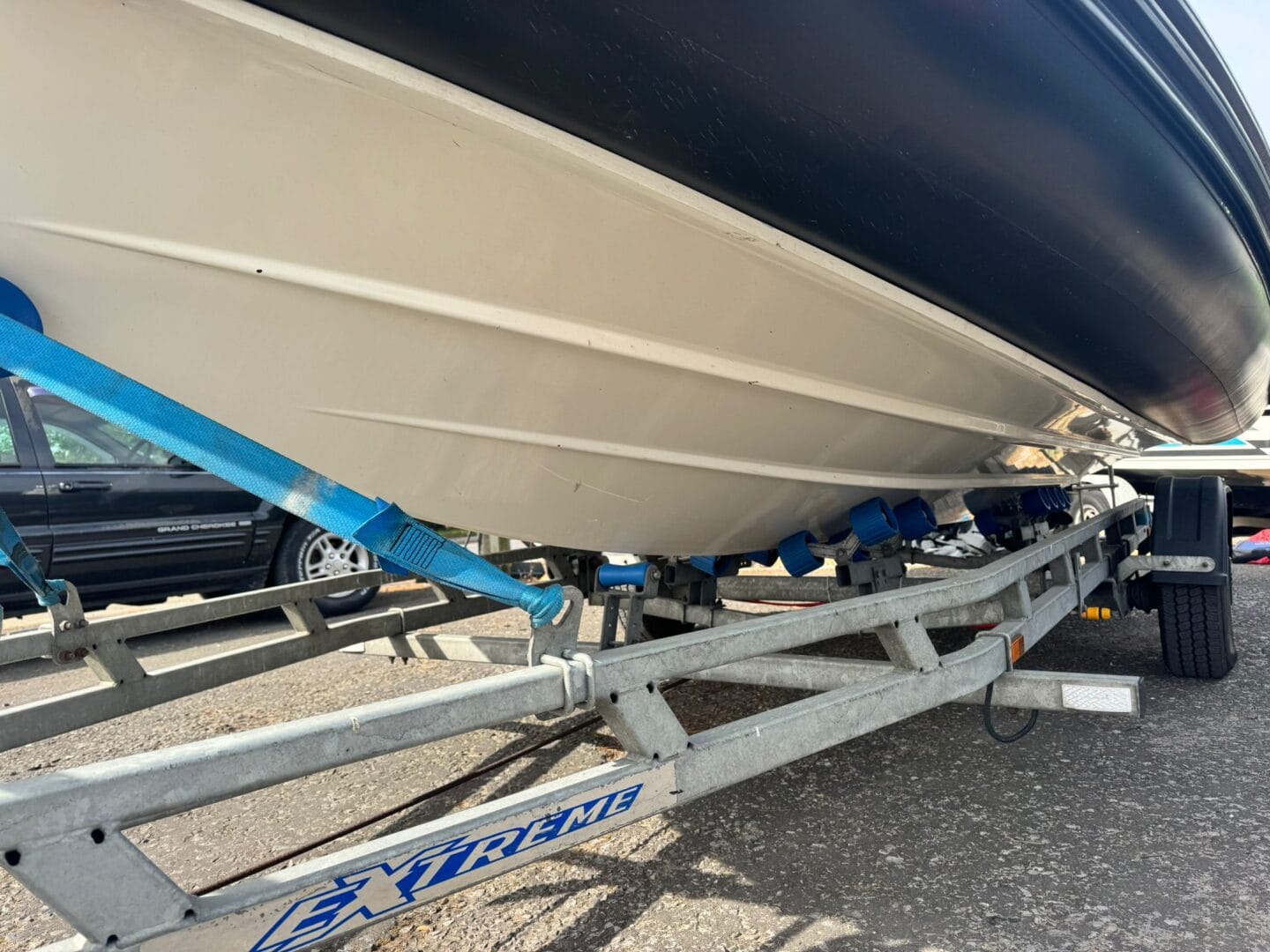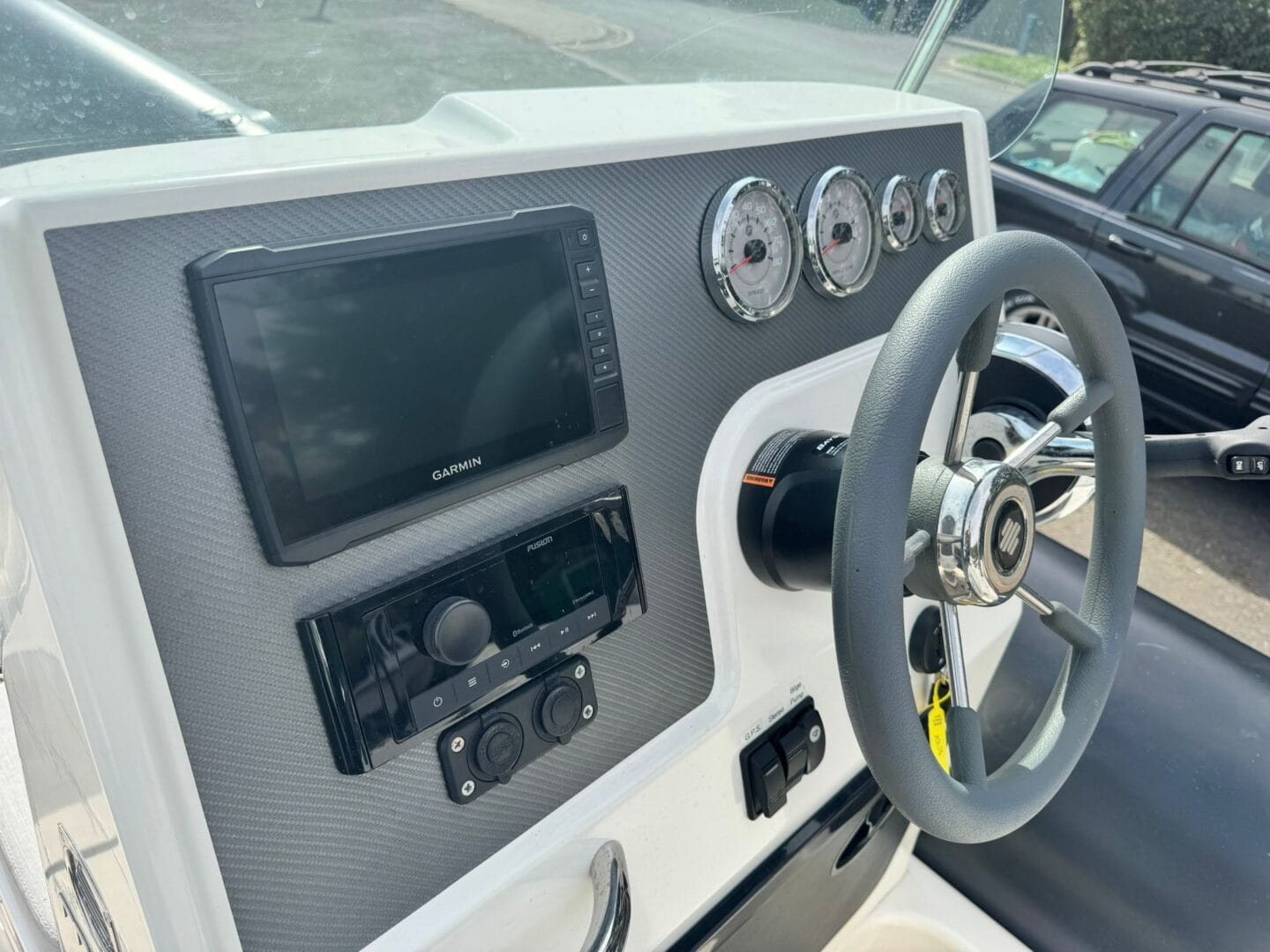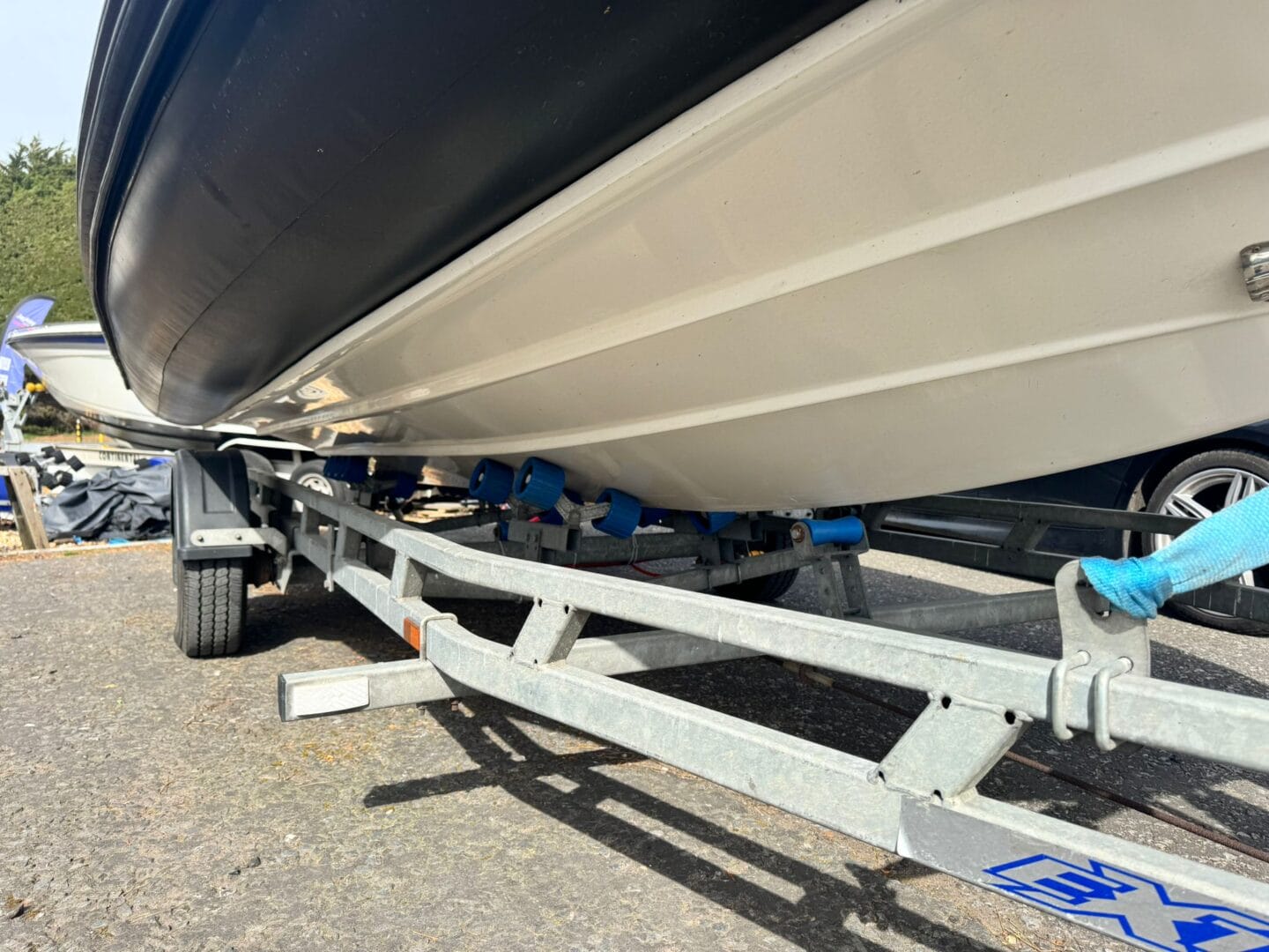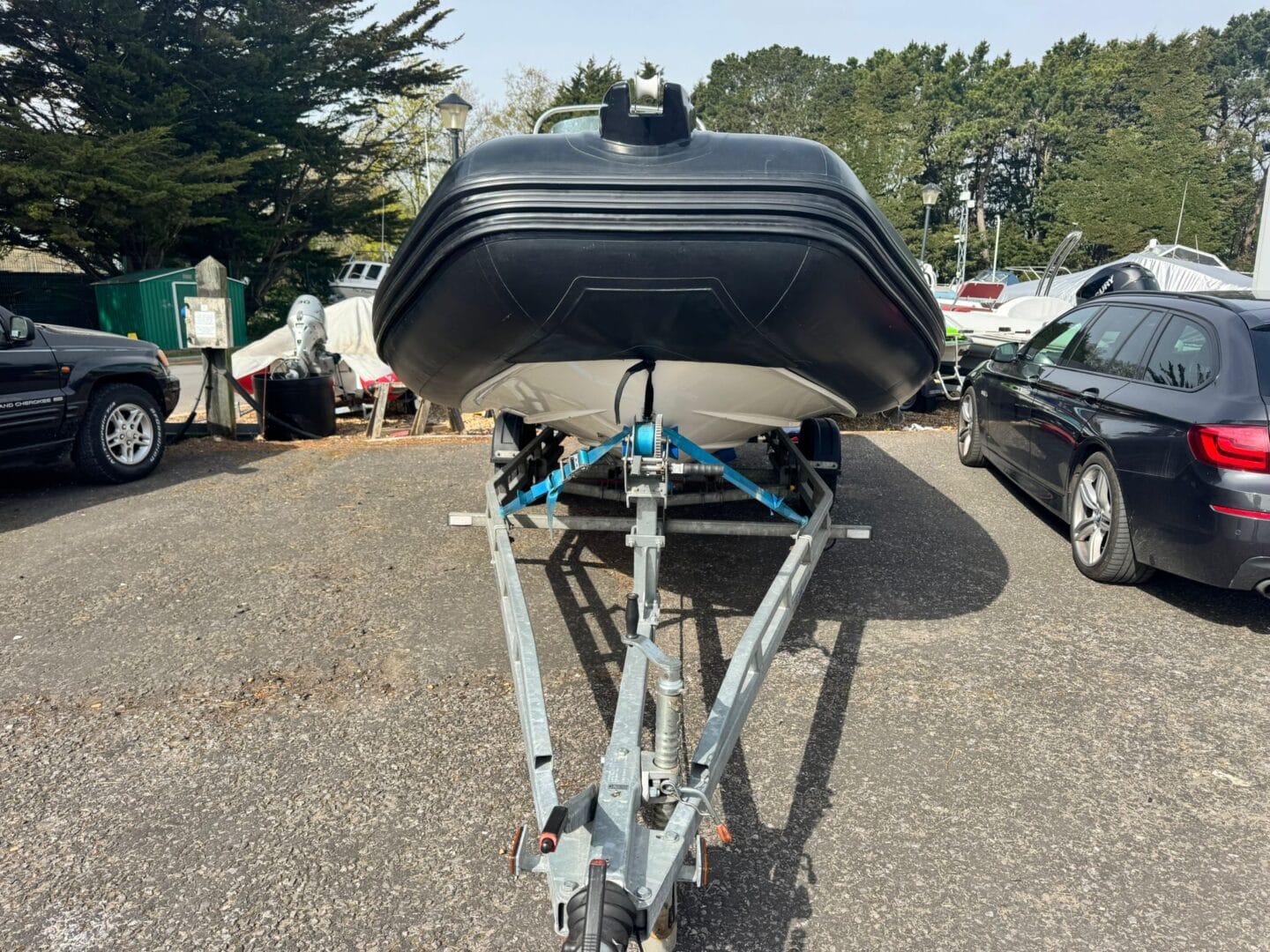 With a removable sun pad, bow table, front facing console seat, double helm seat and bench seat at the rear. This Zodiac is the perfect family RIB. And with the EVA foam flooring on the deck, it really makes this RIB look stunning! With the overall cover for the boat to protect it in the typically English weather.